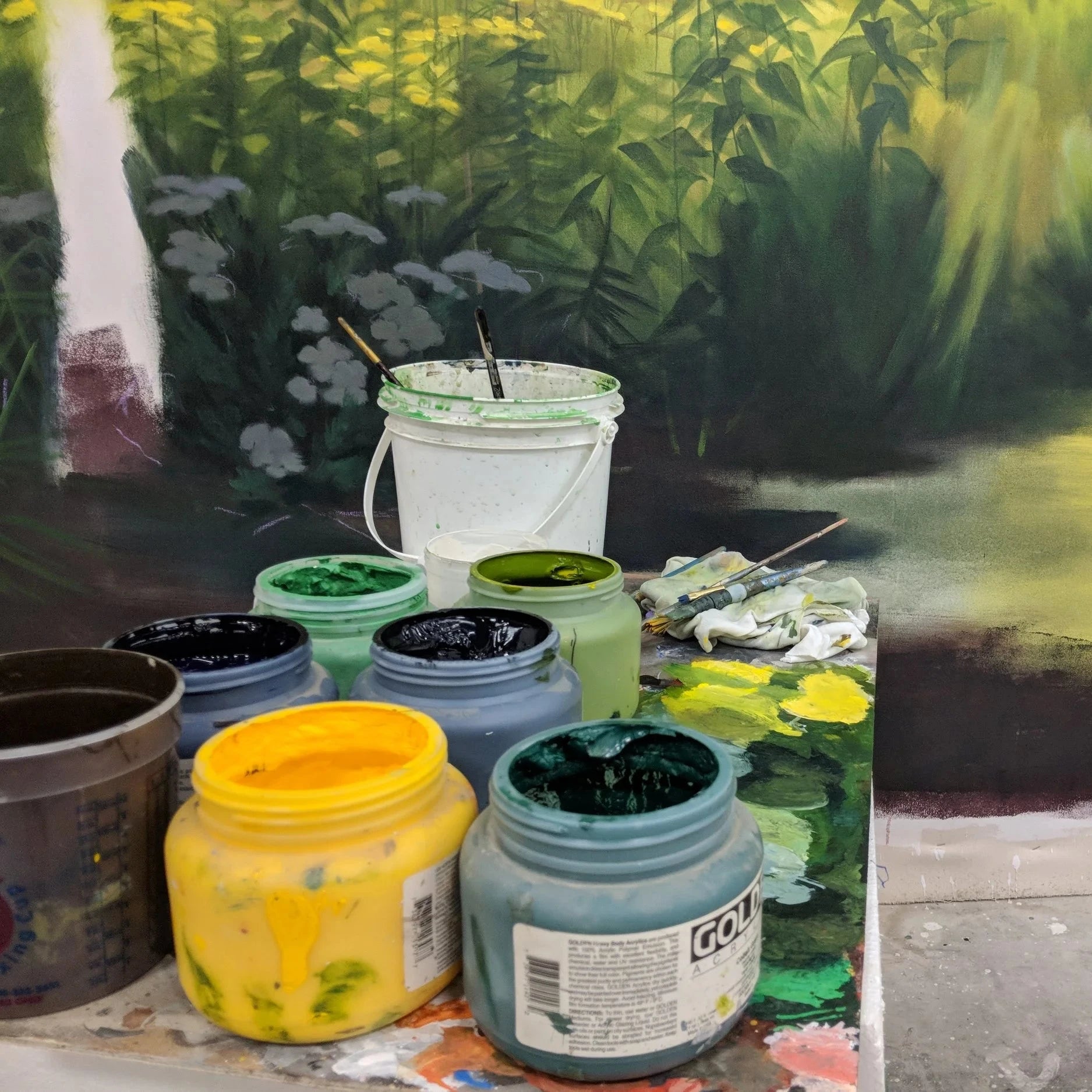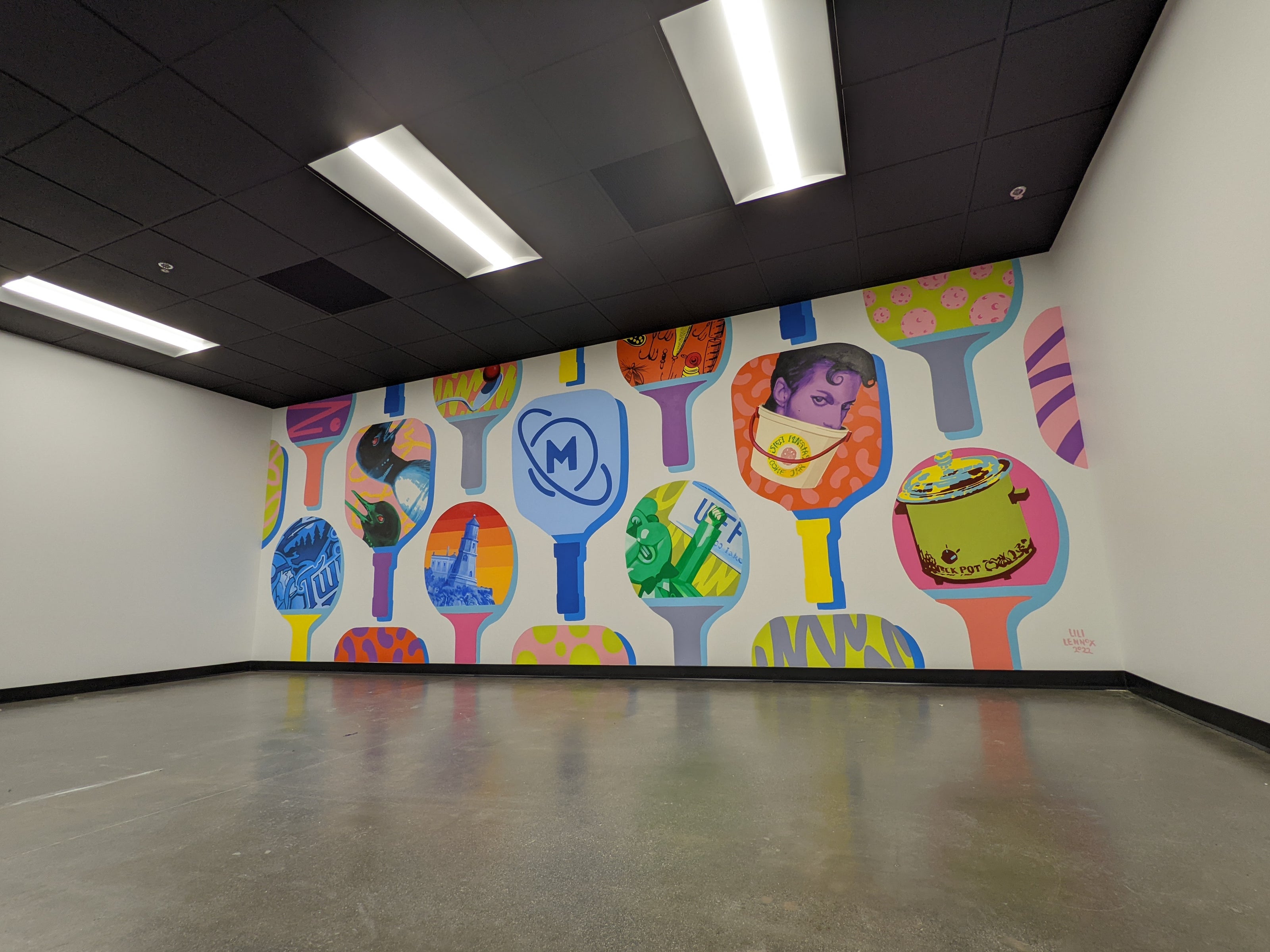 My team and I show up and paint it on site or in my studio. You get a mural that doesn't look like everyone else's Pinterest board.